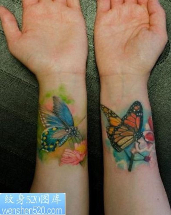 手腕彩色蝴蝶纹身图案图案_蝴蝶纹身图案大全_纹身图吧