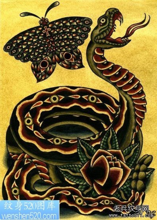 一幅蛇蝴蝶纹身作品_蝴蝶纹身图案大全_纹身图吧