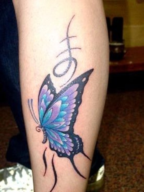 小腿部漂亮的蝴蝶纹身_蝴蝶纹身图案大全_纹身图吧