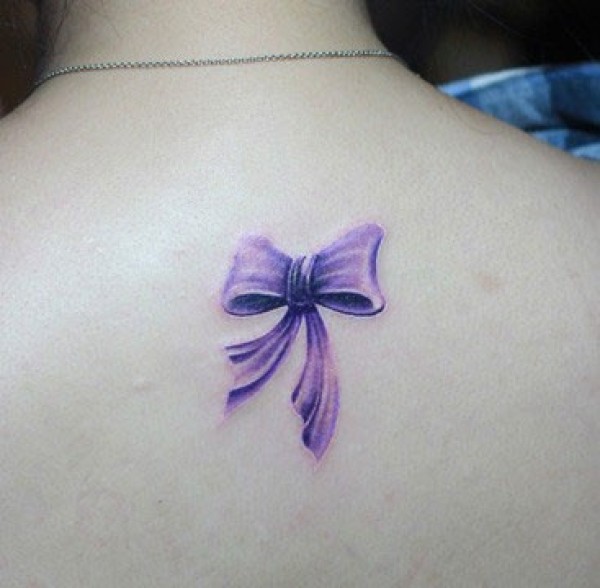 背部紫色蝴蝶结纹身_蝴蝶纹身图案大全_纹身图吧