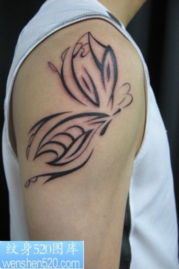 手臂蝴蝶图腾纹身图案_蝴蝶纹身图案大全_纹身图吧