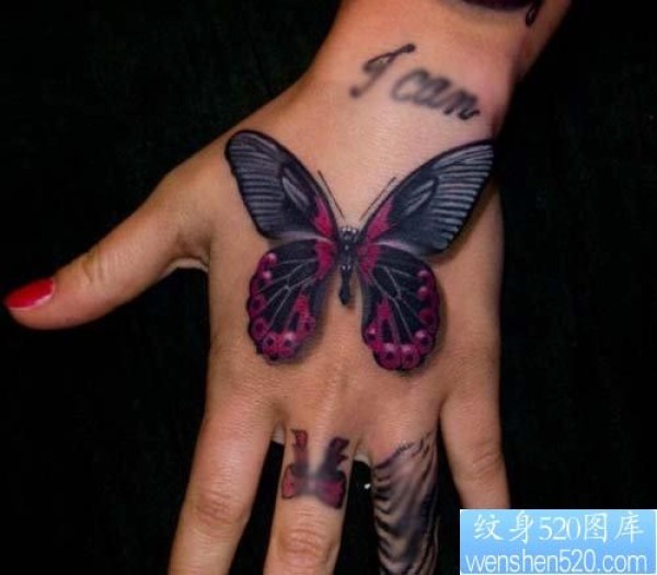 女人手背潮流漂亮的蝴蝶纹身图片_蝴蝶纹身图案大全_纹身图吧