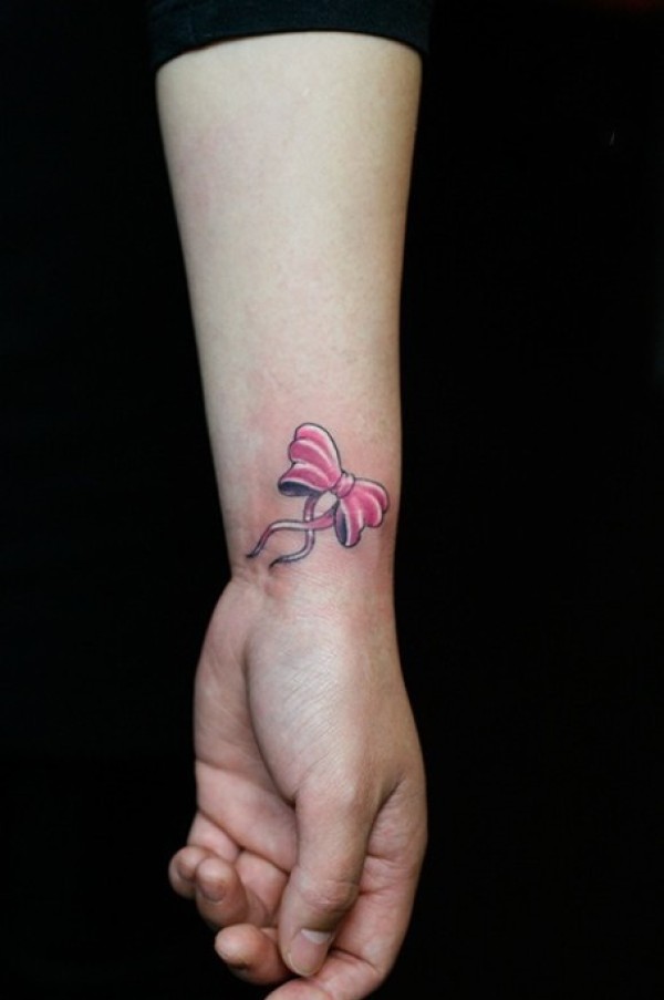 粉色小蝴蝶结手腕纹身图案_蝴蝶纹身图案大全_纹身图吧