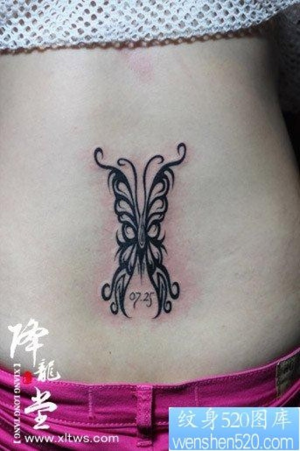 女人后背精美时尚的图腾蝴蝶纹身图片_蝴蝶纹身图案大全_纹身图吧