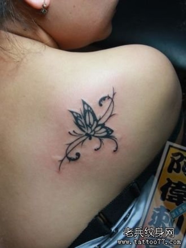 女人肩背一幅图腾蝴蝶纹身图片_蝴蝶纹身图案大全_纹身图吧