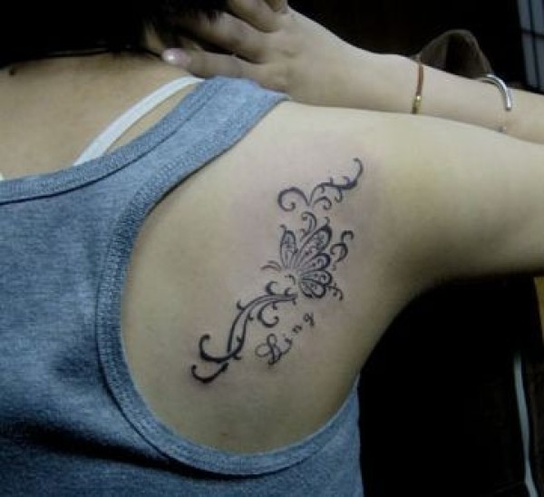 女人背部图腾蝴蝶藤蔓纹身图片_蝴蝶纹身图案大全_纹身图吧