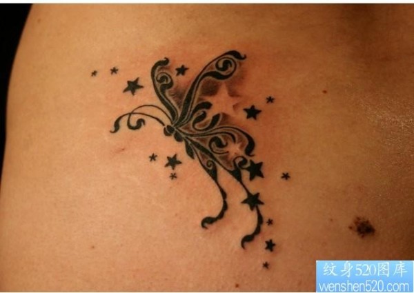 图腾蝴蝶五角星纹身图片作品_蝴蝶纹身图案大全_纹身图吧