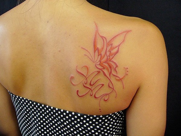 女性肩部很漂亮的蝴蝶图腾纹身_蝴蝶纹身图案大全_纹身图吧
