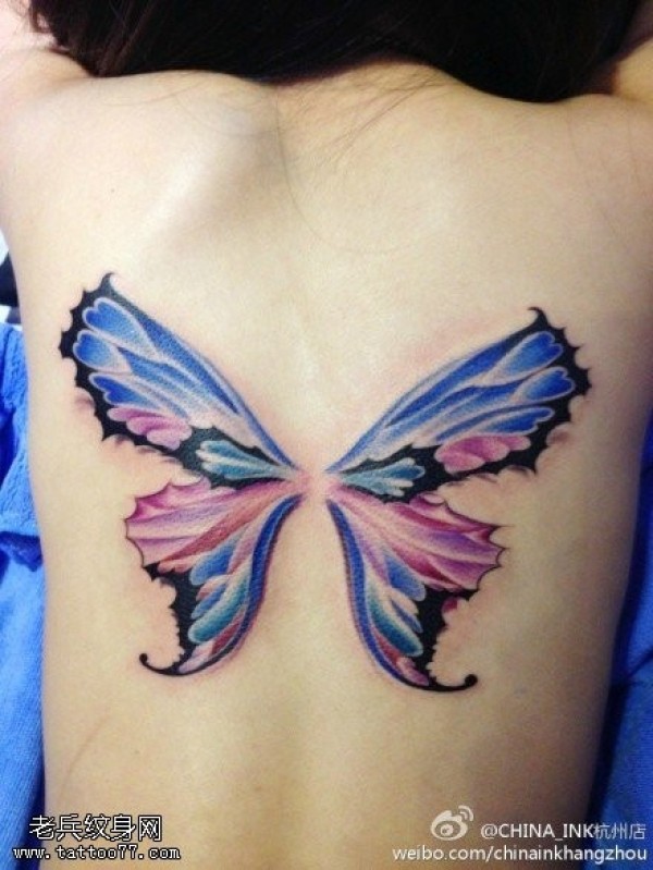 女性背部彩色蝴蝶纹身图案_蝴蝶纹身图案大全_纹身图吧