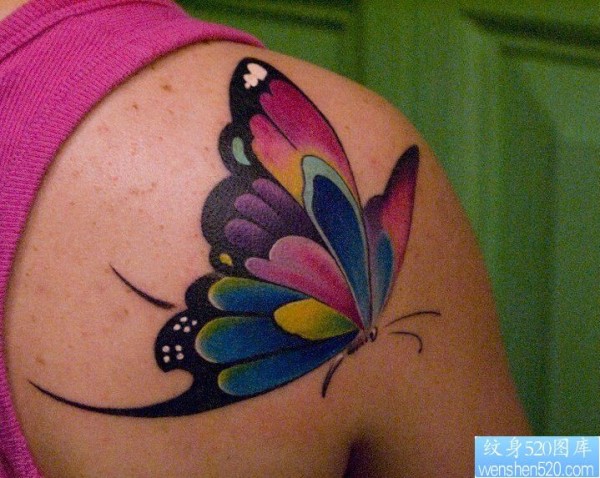 手臂彩色蝴蝶纹身_蝴蝶纹身图案大全_纹身图吧