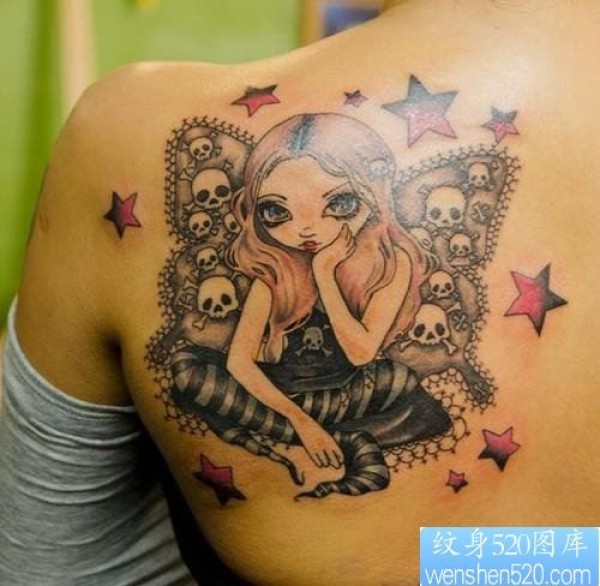 背部蝴蝶精灵纹身图案_蝴蝶纹身图案大全_纹身图吧