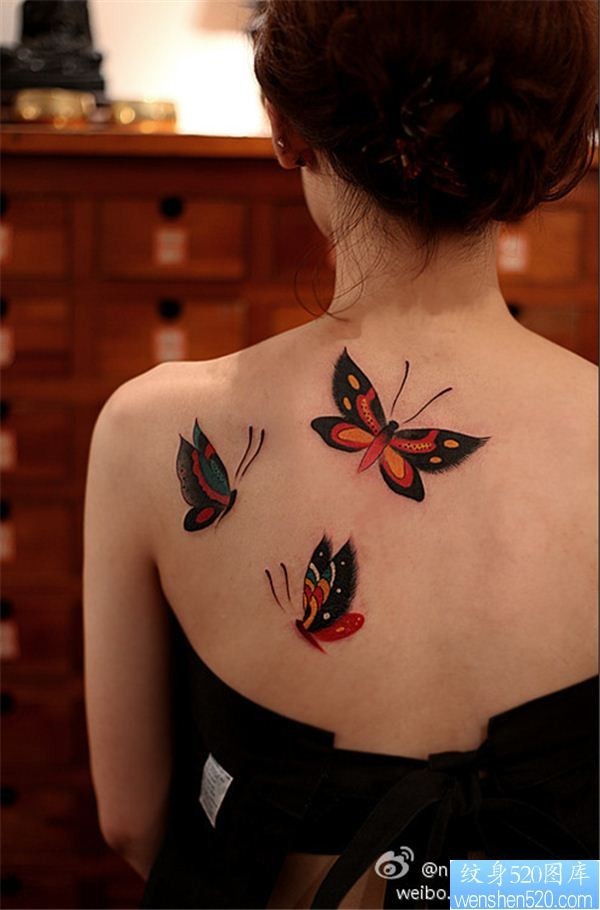 女性背部蝴蝶纹身图案_蝴蝶纹身图案大全_纹身图吧