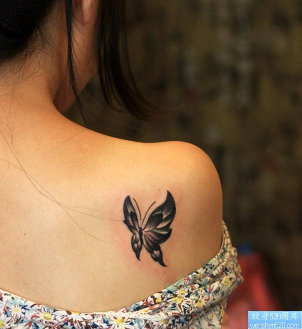 一幅女人背部蝴蝶纹身图片由_蝴蝶纹身图案大全_纹身图吧