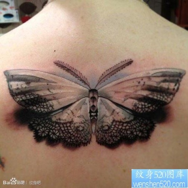 后背漂亮精美的蕾丝边蝴蝶纹身图片_蝴蝶纹身图案大全_纹身图吧