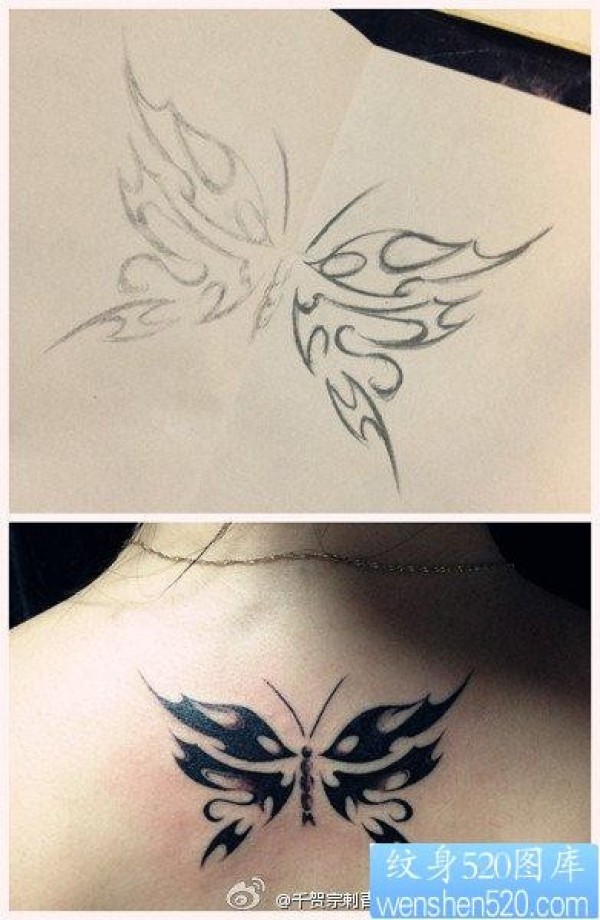 女人背部潮流唯美的蝴蝶纹身图片_蝴蝶纹身图案大全_纹身图吧