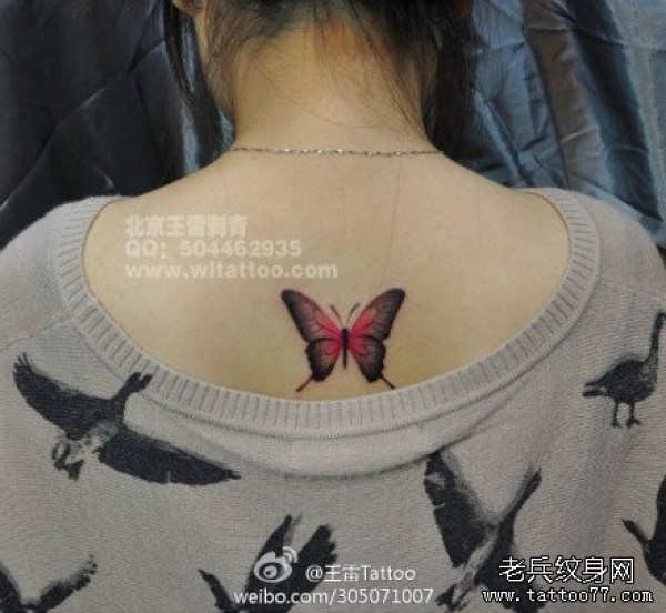 美女背部漂亮的彩色蝴蝶纹身图片_蝴蝶纹身图案大全_纹身图吧