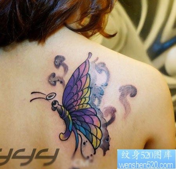 女孩子背部漂亮的彩色蝴蝶纹身图片_蝴蝶纹身图案大全_纹身图吧