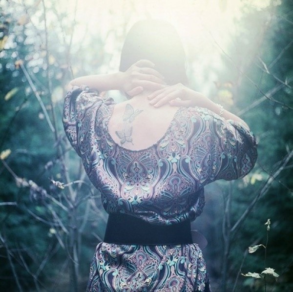 女性背部蝴蝶漂亮意境刺青_蝴蝶纹身图案大全_纹身图吧
