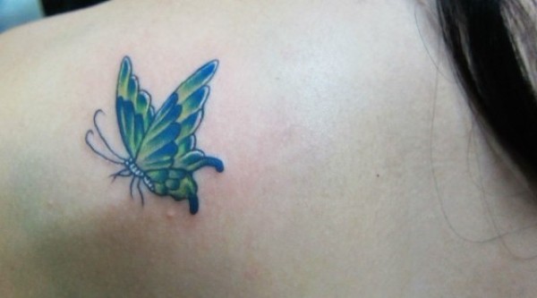 女士后背彩色小蝴蝶纹身图案_蝴蝶纹身图案大全_纹身图吧