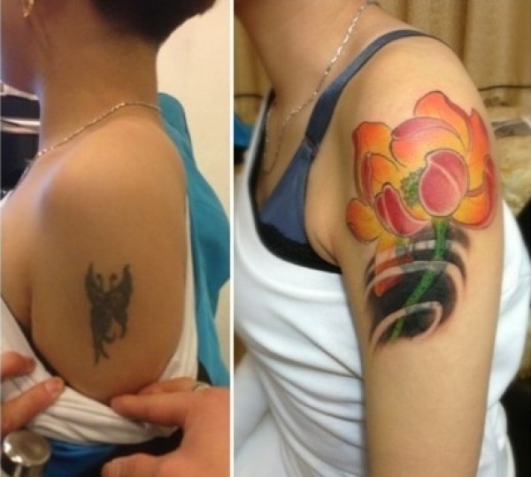 随心所欲的纹身修改技术,蝴蝶改荷花用艳丽的_蝴蝶纹身图案大全_纹身图吧