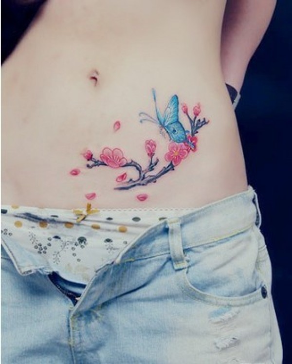 腰部彩色蝴蝶纹身_蝴蝶纹身图案大全_纹身图吧