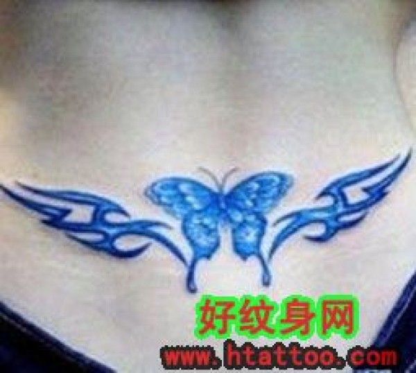 腰部彩色蝴蝶纹身_蝴蝶纹身图案大全_纹身图吧