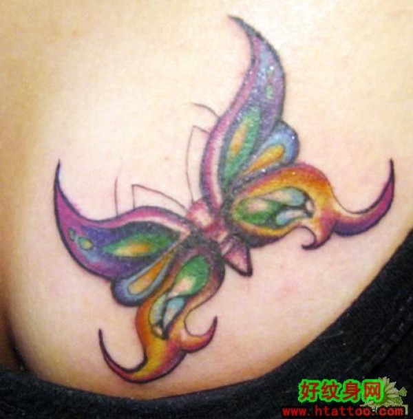 腰部彩色蝴蝶纹身_蝴蝶纹身图案大全_纹身图吧