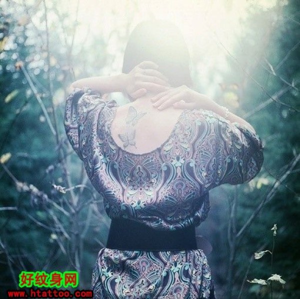 女生背部蝴蝶唯美意境纹身_蝴蝶纹身图案大全_纹身图吧