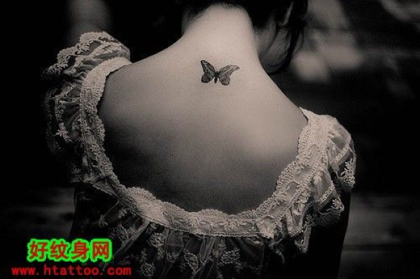 女生颈部蝴蝶纹身_蝴蝶纹身图案大全_纹身图吧