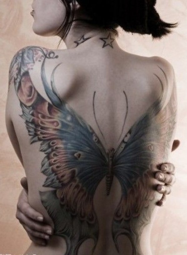 女生后背大型彩绘蝴蝶纹身纹身的比例与模特的_蝴蝶纹身图案大全_纹身图吧