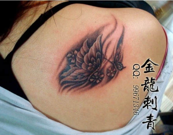 女生后背蝴蝶小清新纹身_蝴蝶纹身图案大全_纹身图吧