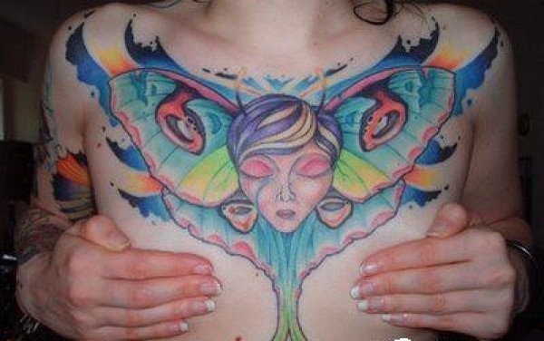 胸部蝴蝶图案加卡通人物图像纹身这是蝴蝶仙子_蝴蝶纹身图案大全_纹身图吧