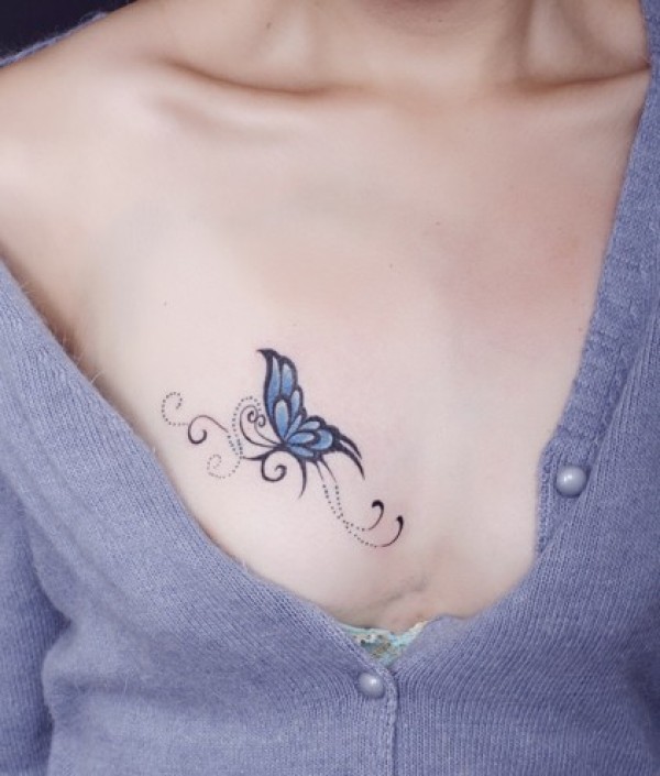 女生胸部的蓝色蝴蝶纹身欣赏估计不可能有人否_蝴蝶纹身图案大全_纹身图吧