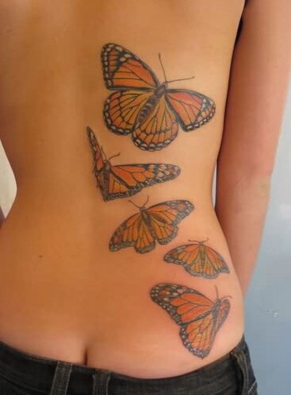 腰部彩色蝴蝶纹身_蝴蝶纹身图案大全_纹身图吧