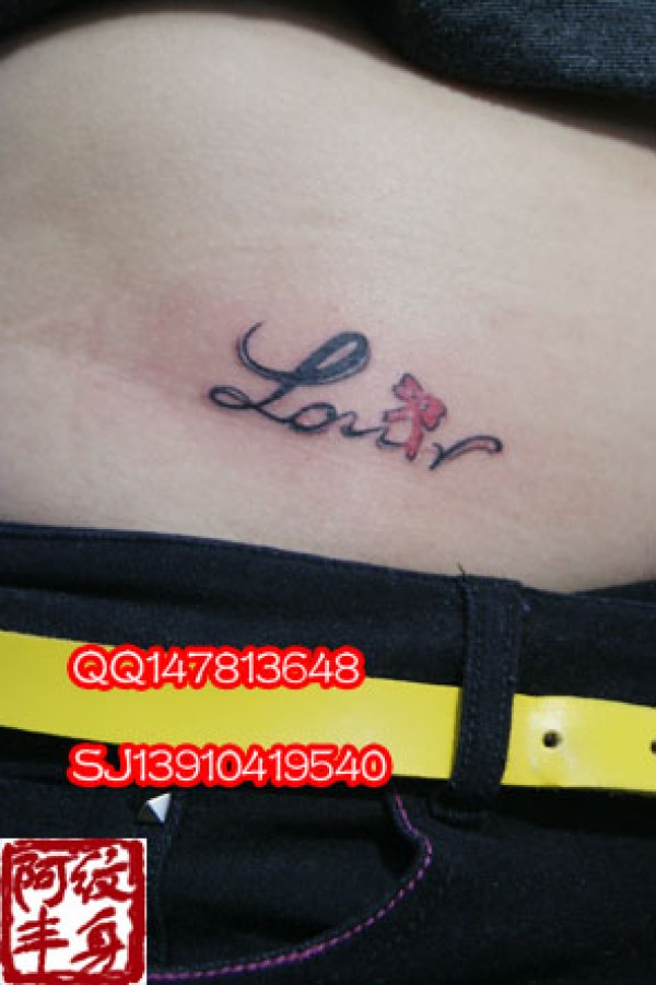 腰部爱意浓浓的英文字母纹身图带蝴蝶结的英文_蝴蝶纹身图案大全_纹身图吧