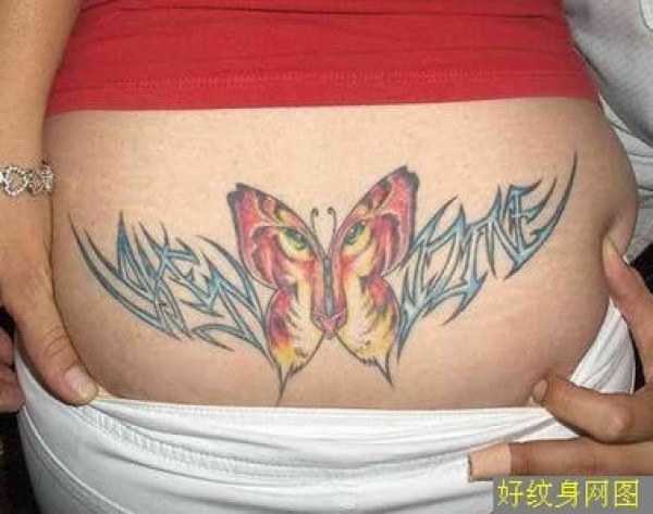腰部彩色蝴蝶纹身_蝴蝶纹身图案大全_纹身图吧