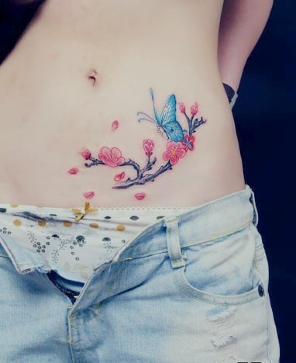 腰部与腹部的蓝色蝴蝶纹身对比怎么能让小小的_蝴蝶纹身图案大全_纹身图吧