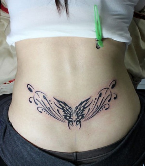 刚刚完成的腰部蝴蝶图腾纹身_蝴蝶纹身图案大全_纹身图吧