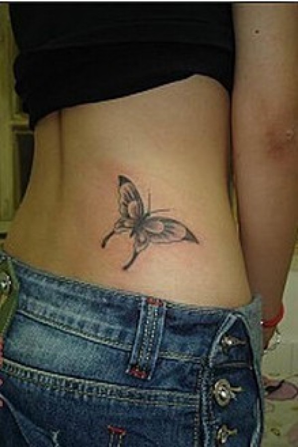 腰部素色的蝴蝶纹身图素色的蝴蝶纹身比起彩绘_蝴蝶纹身图案大全_纹身图吧