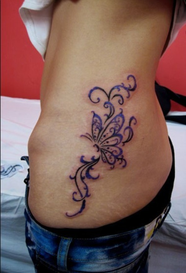 腰部彩色蝴蝶纹身_蝴蝶纹身图案大全_纹身图吧