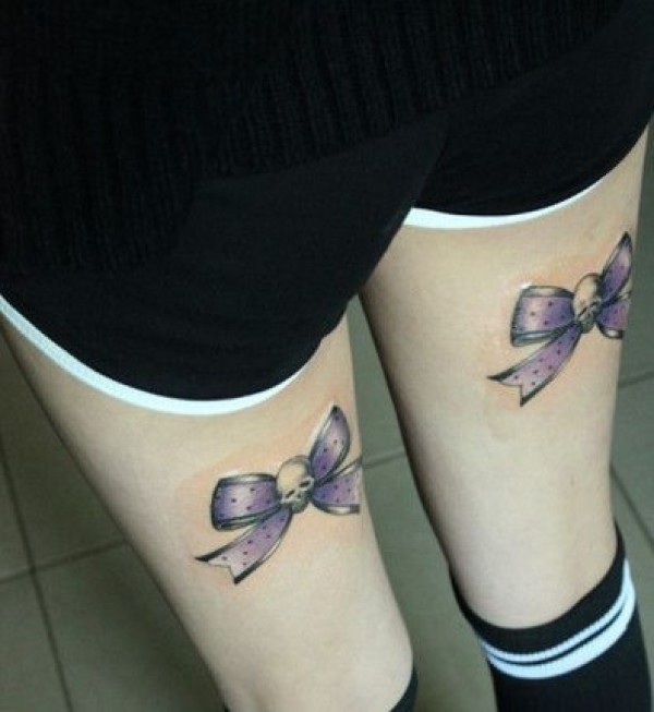 腿弯部的蝴蝶结与骷髅头纹身看纹身是如何将邪_蝴蝶纹身图案大全_纹身图吧