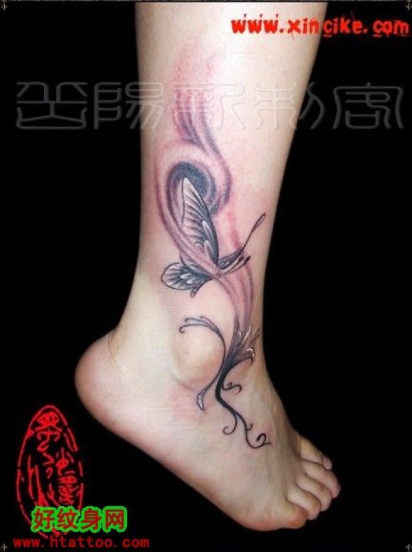 女性纹身图案大全之小腿蝴蝶花图腾纹身_蝴蝶纹身图案大全_纹身图吧