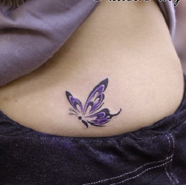 腰部彩色蝴蝶纹身_蝴蝶纹身图案大全_纹身图吧