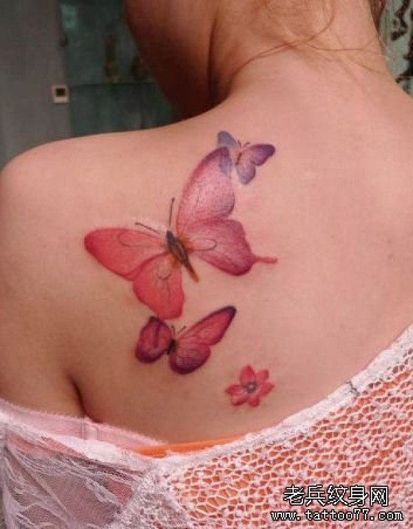 美女背部好看的彩色蝴蝶纹身图案_蝴蝶纹身图案大全_纹身图吧