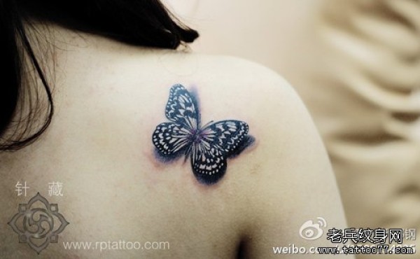 女生肩背写实的蝴蝶纹身图案_蝴蝶纹身图案大全_纹身图吧