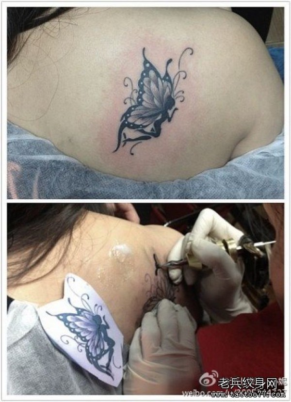 女人肩背时尚唯美的蝴蝶纹身图案_蝴蝶纹身图案大全_纹身图吧