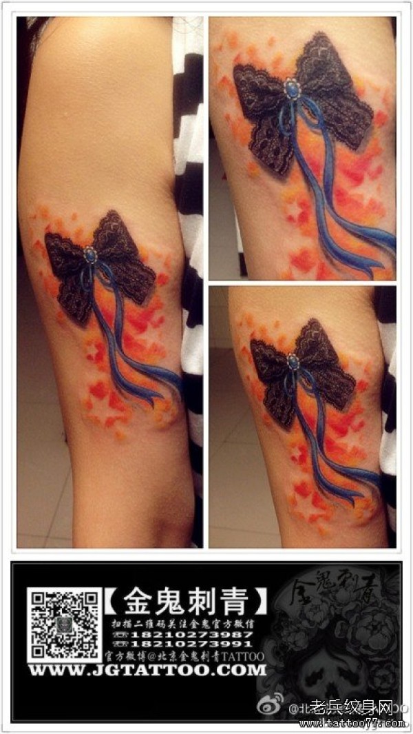 手臂潮流精美的蕾丝蝴蝶结纹身图案_蝴蝶纹身图案大全_纹身图吧