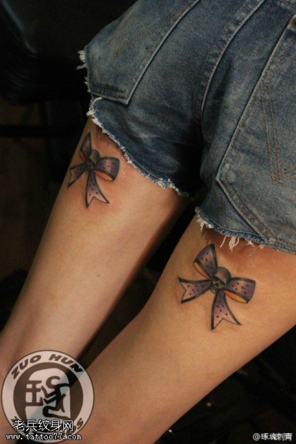 女性腿部蝴蝶结纹身图案_蝴蝶纹身图案大全_纹身图吧