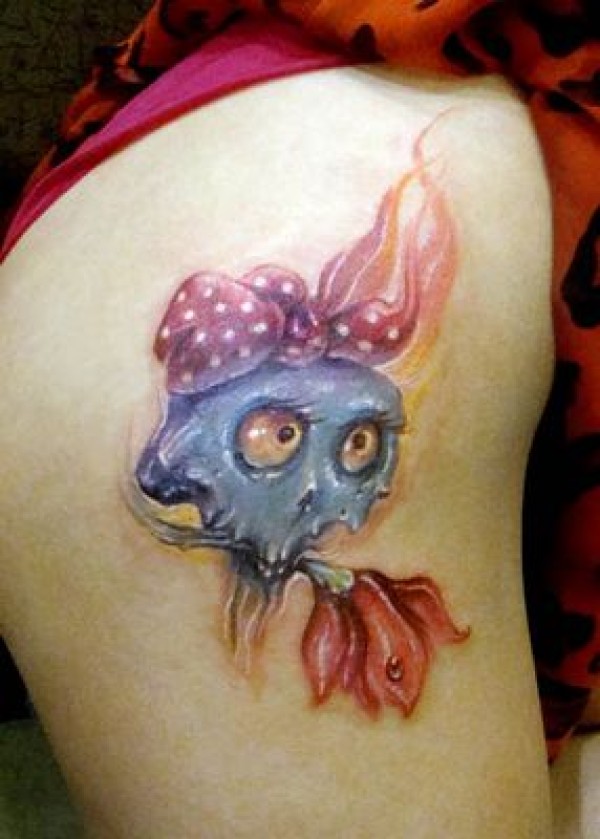 臀部纹身图案臀部彩色骷髅蝴蝶结纹身图案_蝴蝶纹身图案大全_纹身图吧