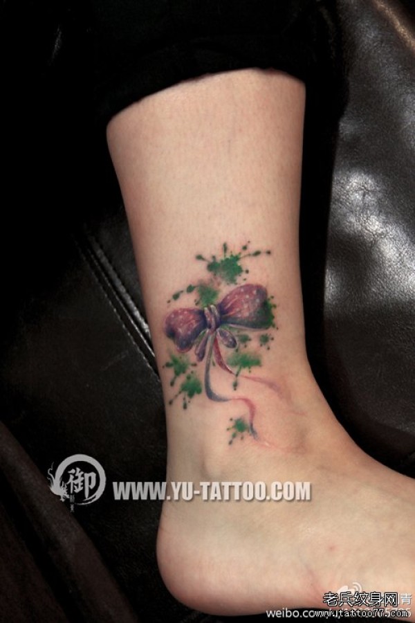 美女腿部精美的写实蝴蝶结纹身图案_蝴蝶纹身图案大全_纹身图吧